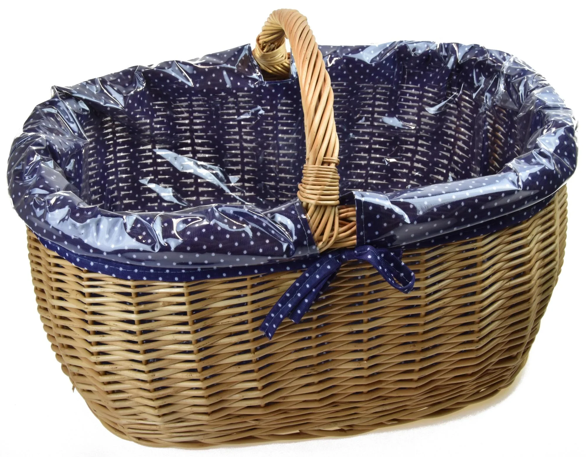Parametry produktu Proutěný nákupní koš s vyjímatelnou vložkou a modrým textilním doplňkem
