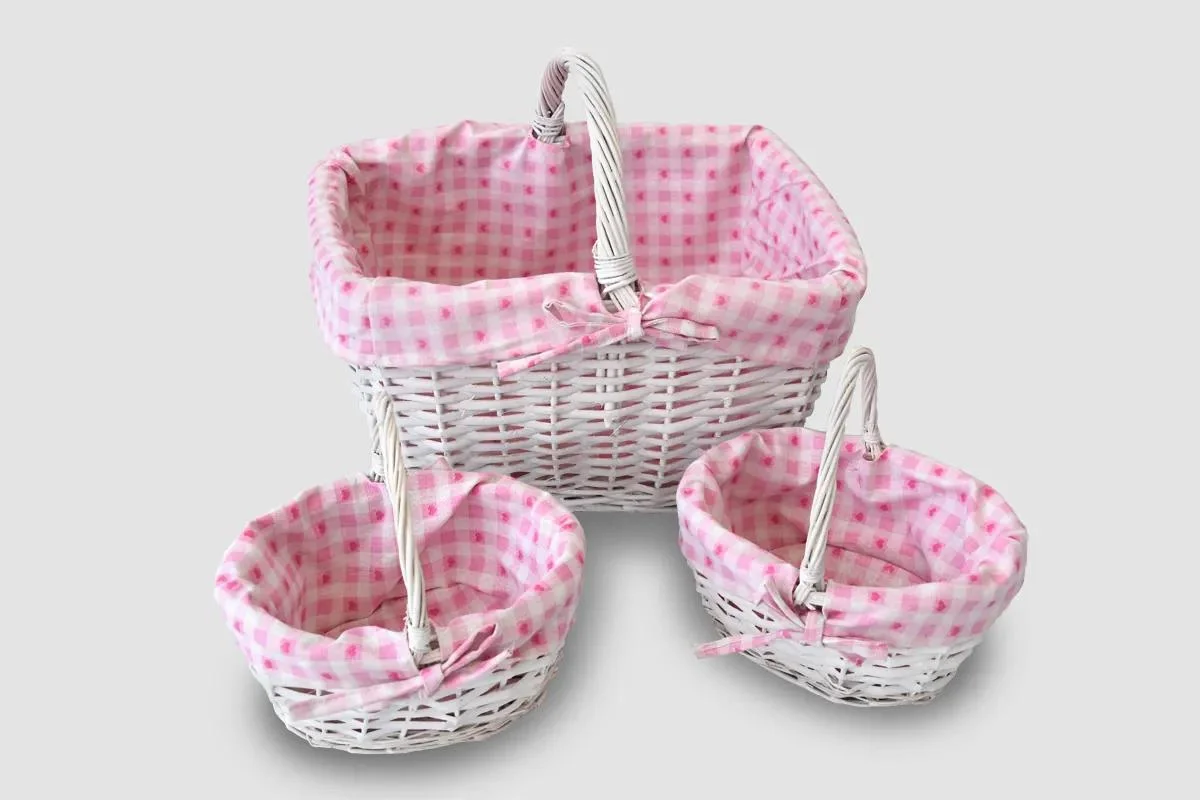Parametry produktu Proutěný nákupní košík s kostkovanou látkou – bílý