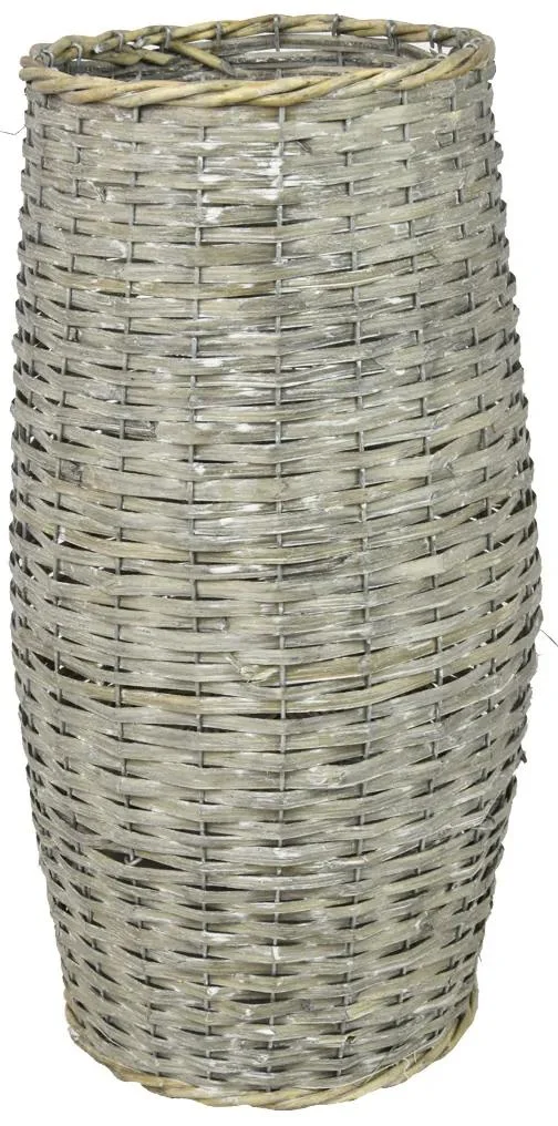 Elegantní proutěvá váza v šedé barvě, ideální pro aranžování květin nebo jako dekorativní prvek u vchodových dveří či na terase. Tato lehká a stylová váza nabízí praktické využití díky zabudované poličce uvnitř, kterou lze využít pro květinové vazby nebo rostliny v květináčích.