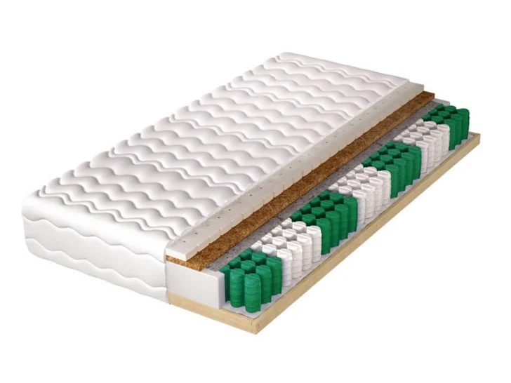 Pružiny jsou rozdělené do kapsiček, což minimalizuje jejich vzájemné propojování a slibuje dlouhou životnost tvaru i při náročné zátěži. Spodní část matrace je doplněna kokosovou deskou tloušťky 1 cm a horní část tvoří 3 cm latexové pěny, která dodává pružnost a komfort. Kokosová deska zlepšuje cirkulaci vzduchu, je antialergická a díky své struktuře zvyšuje tuhost matrace a odolnost vůči deformacím; latex pak podporuje dlouhověký tvar a pohodlí při spaní. Vnitřní perforace zajišťuje efektivní větrání a matrace je hypoalergenní, vhodná pro citlivou pokožku. Rozměry 140×200 cm, výška 22 cm, nosnost až 210 kg a záruka 24 měsíců potvrzují její spolehlivost.