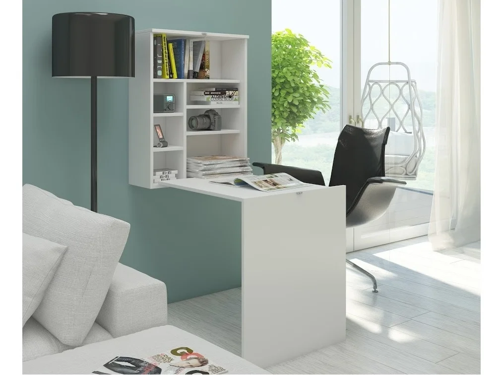 Praktický psací stůl, který lze bezpečně upevnit na zeď a výrazně ušetřit tak podlahovou plochu. Díky skládací konstrukci se plocha pro práci dá rychle zvětšit i rozšířit a po dokončení práce ji opět jednoduše složit.
