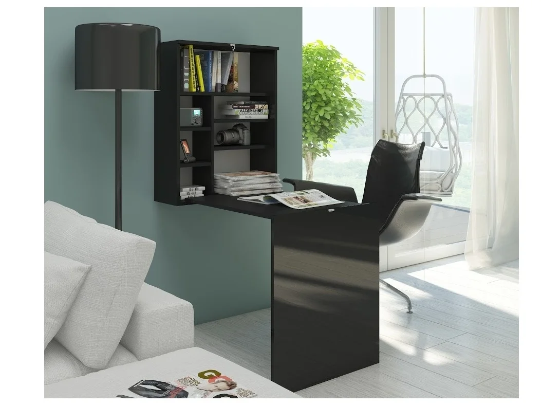 Psací stůl ANDIJON – černý lesk, na zeď, rozkládací Psací stoly