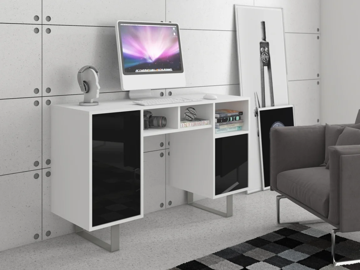 Přesně navržený psací stůl s praktickým úložným prostorem pro pořádek v pracovně. Provedení v bílo-černém lesku dodává interiéru moderní vzhled a povrch je snadný na údržbu. Rozměry 120 x 75 x 42 cm (š x v x h) a materiál LTD o tloušťce 16 mm zajišťují pevnost a stabilitu. Dodání v demontu, montáž je rychlá a pohodlná. Záruka 5 let potvrzuje dlouhodobou spolehlivost tohoto stolu.