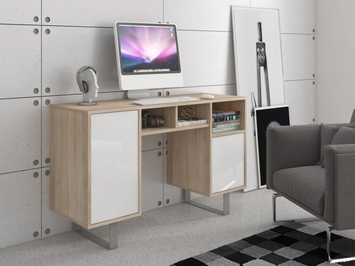 Psací stůl BOKARO 9, dub sonoma / bílý lesk, 120 × 75 × 42 cm Psací stoly