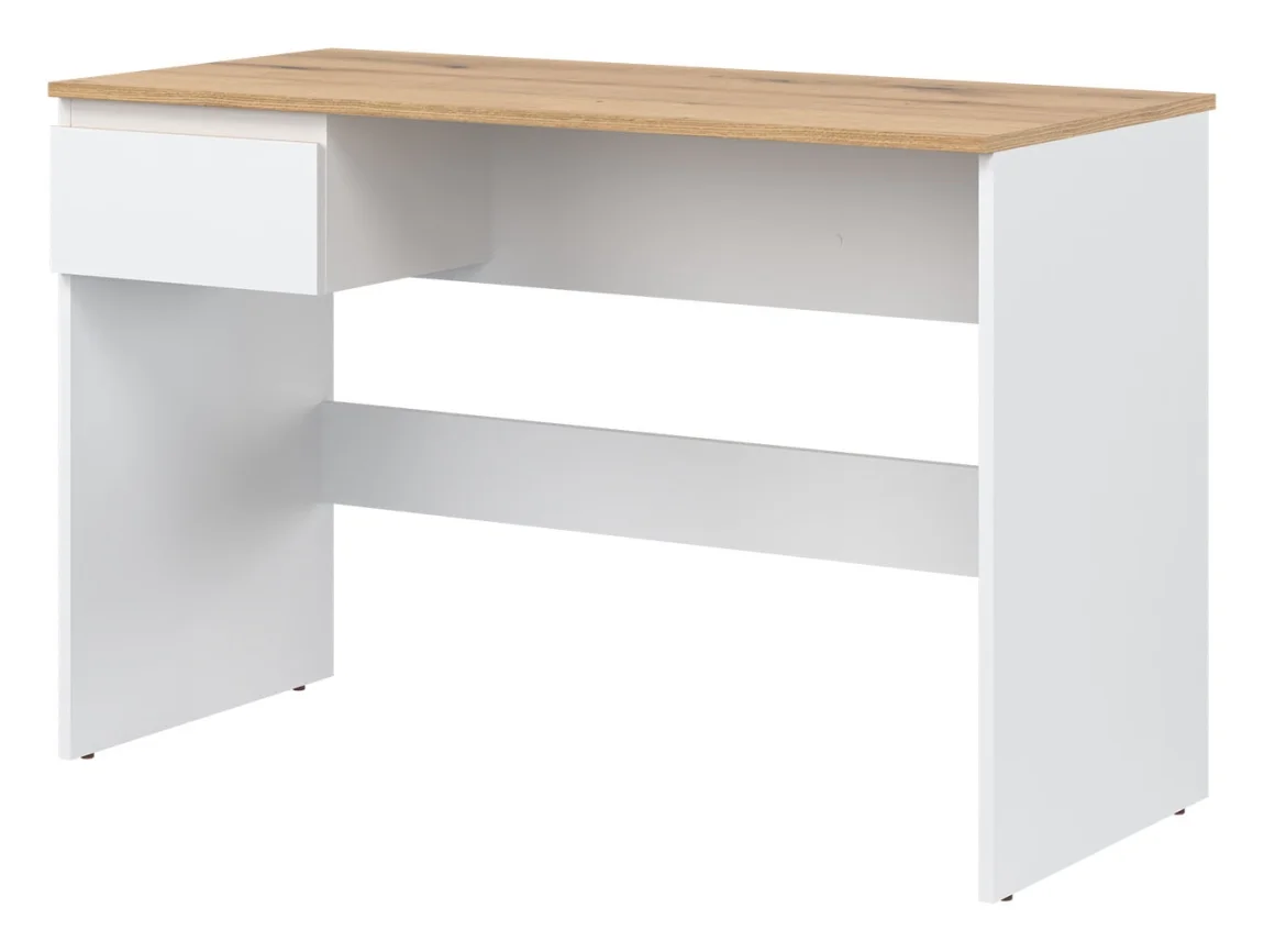 Uspořádaný pracovní prostor díky zásuvce a praktickým designovým prvkům ze sektorové řady BORROMEO. Stůl je proveden v kombinaci bílé barvy a dřevěného dekoru evoke a je vyroben z odolného lamina pro dlouhou životnost. Rozměry 115 x 75 x 54 cm nabízejí dostatek místa na notebook, dokumenty i psací potřeby. Dodáváno v demontu, montáž zvládnete během několika minut podle návodu. Ideální volba pro domácí kancelář, která klade důraz na pořádek, funkčnost a moderní vzhled.