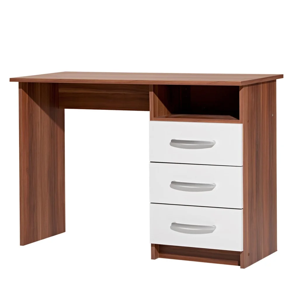 Psací stůl CASEN s 3 zásuvkami, ořech/bílá Psací stoly