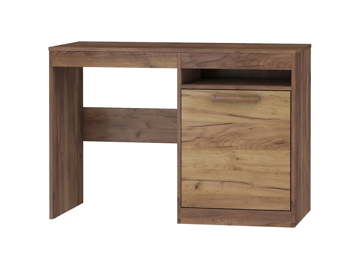 Praktický psací stůl GATTON s dvířky v kombinaci barev craft tobaco a craft zlatý je ideálním řešením pro domácí pracovnu i kancelář. Rozměry činí 110 x 77 x 53 cm a konstrukce z LTD s ABS hranami zaručuje pevnost a dlouhou životnost.