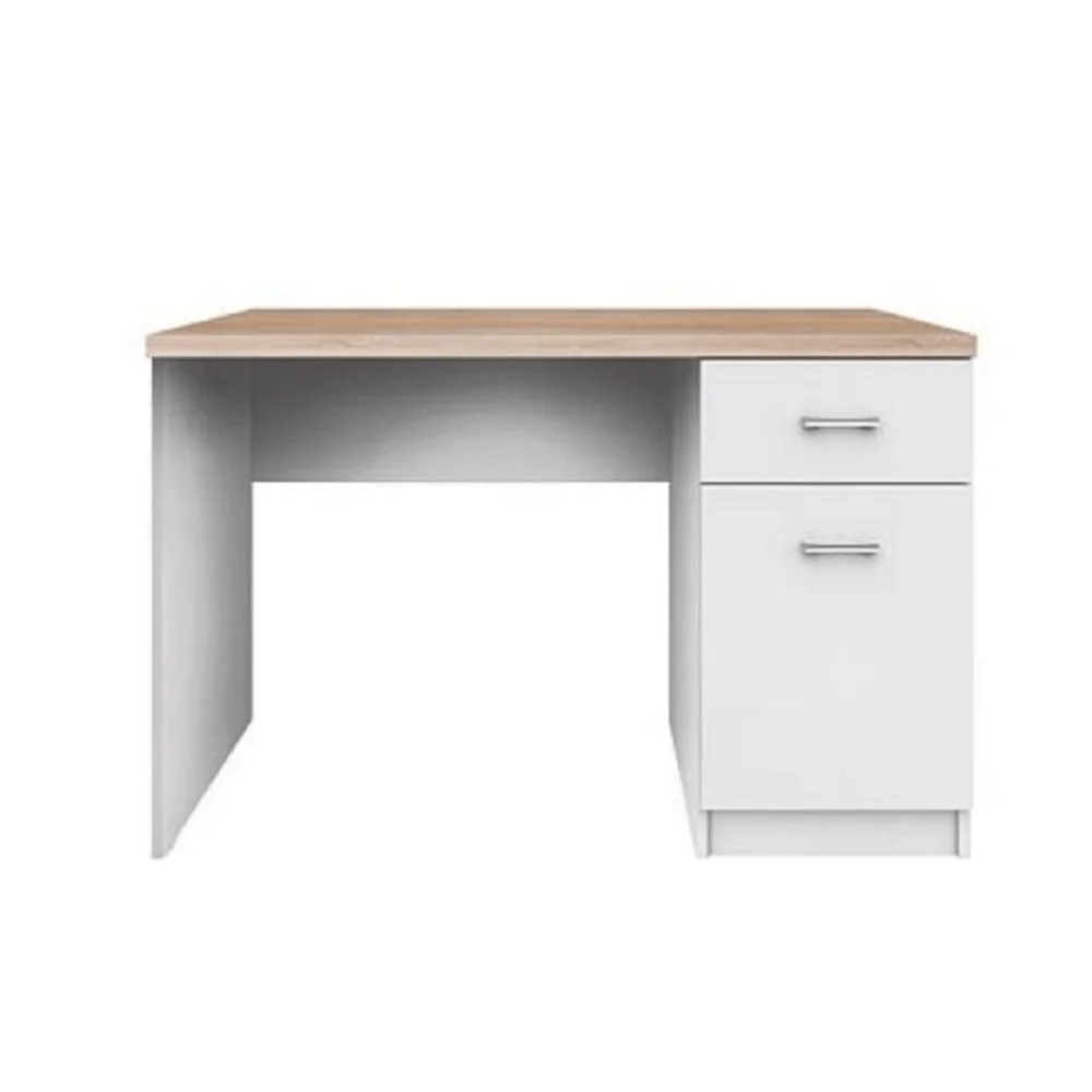 Pracovní stůl SANGIR představuje moderní řešení s praktickým úložným prostorem – obsahuje zásuvku a skříňku pro dokumenty a kancelářské potřeby. Rozměry 120 cm na šířku, 77 cm na výšku a 55 cm do hloubky zajišťují pohodlné pracovní zóny i ve stísněných prostorách.