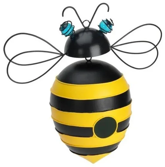 Tato elegantní závěsná ptačí budka, vyrobená z odolného kovu, přináší do vaší zahrady originální design inspirovaný včelou. Malý vstupní otvor je ideální pro okouzlující ptáčky a poskytuje jim bezpečné útočiště po celý rok.