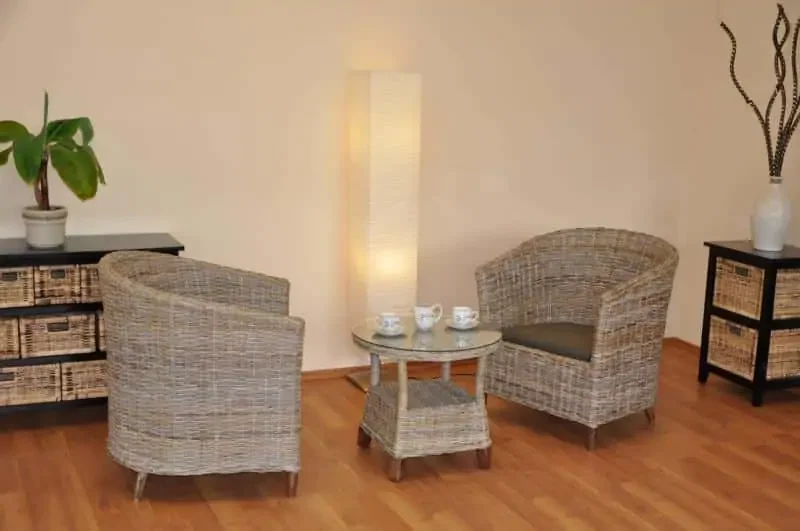 Představujeme luxusní ratanovou sedací soupravu Maria, která spojuje přírodní ratan kubu s pevným mahagonovým rámem. Sestavu tvoří dvě pohodlná křesla s polstry a stylový stolek se skleněnou deskou, vše sladěné do nadčasového designu. Nohy křesel i stolku jsou vyrobeny z mahagonového dřeva, čímž vzniká pevná a elegantní koncepce. Technické parametry: křeslo 70x72x80 cm, výška sedu 40 cm; stolek průměr 58 cm, výška 50 cm. Jedná se o luxusní soupravu, která spojuje přírodní materiály s elegantním zpracováním a jedinečným stylem. Vzhledem k ruční výrobě se mohou objevit drobné odchylky v rozměrech, barvě či vypletení, což je normální a není důvodem reklamace. Navíc oceníte dlouhou životnost a nadčasový vzhled, který se snadno sladí s různými interiéry a přidá jim šlechtu.