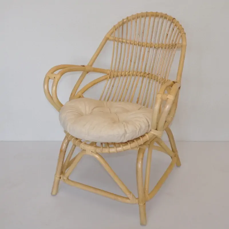 Ratanové křeslo Katak kombinuje přírodní materiál s nadčasovým designem a dodává interiéru příjemnou atmosféru. Konstrukce z ratanu v odstínu světle béžového melíru působí teple a snadno se sladí s různými styly nábytku.
