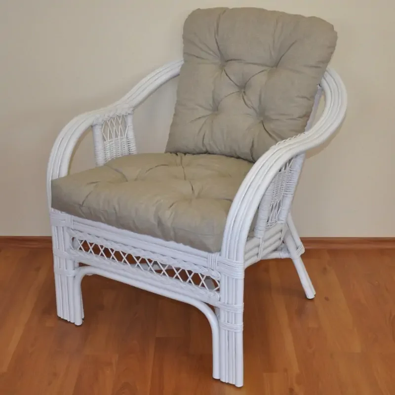Křeslo Rio de Janeiro je vyrobené z přírodního ratanu a nabídne svěží bílou kombinaci s tmavě béžovým melírem. Většina spojů je provedena trojitým propletem, což zajišťuje vysokou pevnost a dlouhou životnost. Komfortně se na něm sedí díky prostornému tvaru a kvalitním polštářům, které poskytují podpůrný a měkký posed. Konstrukce i výplet jsou sladěny do bílé barvy, doplněné melírem pro jemný kontrast. Rozměry křesla činí 68 × 75 × 74 cm, nosnost dosahuje 125 kg a výška sedu je 44 cm. Polstrování je vyrobené v České republice a vyznačuje se vysokou kvalitou zpracování. Díky svému stylu se křeslo hodí jak do interiéru, tak na terasu či zahradu, a jeho nadčasový vzhled podtrhne atmosféru každého prostoru.