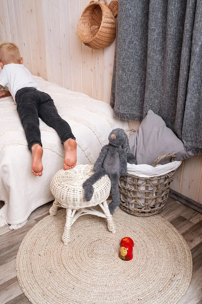 Stylový kulatý koš z šedého rattanového proutí s elegantním výpletem a bílou odnímatelnou textilií nabízí ideální řešení pro uspořádání vašeho domova. Díky lehké konstrukci s pevnými ušima jej snadno přenesete do libovolné místnosti a praktická vnitřní látka zabrání propadávání i těch nejmenších předmětů.