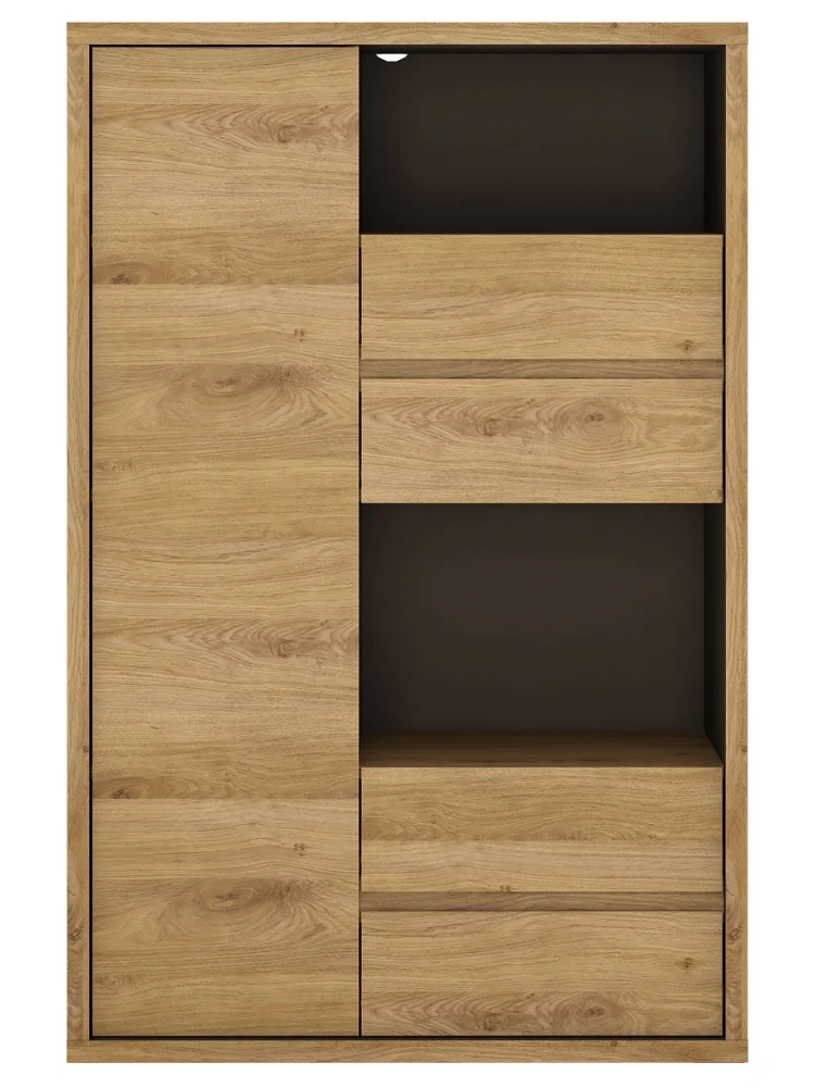 Regál s policemi a čtyřmi zásuvkami v dekoru Dub Shetland nabízí praktickou a přehlednou organizaci prostoru. Laminovaný povrch zajišťuje dlouhou výdrž a snadnou údržbu. Rozměry: 132,1 × 86 × 40 cm (výška × šířka × hloubka).