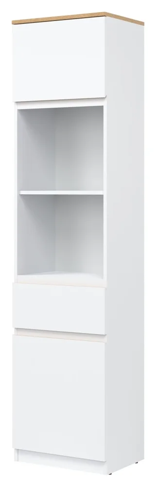 Díky úzkému profilu se hodí i do menších prostor a nabízí praktické odkládací prostory. laminovaný materiál zajišťuje dlouhodobou spolehlivost. Rozměry: šířka 47,5 cm, výška 194 cm a hloubka 35 cm. Dodáváno v demontu.