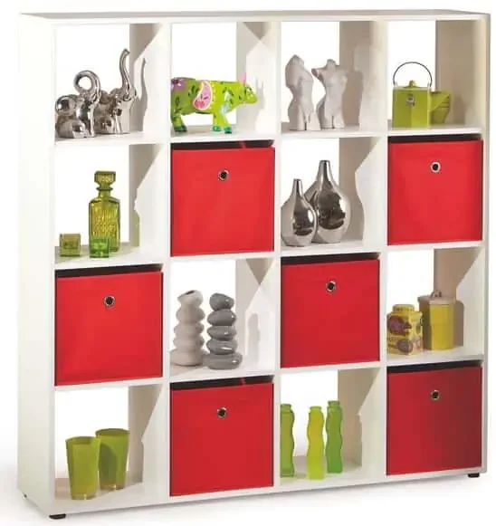 Regál Caboto 16 je vyroben z lamina v bílé barvě, díky čemu působí svěžím a moderním dojmem. Je rozdělen do 16 úložných prostorů, které poskytují místo pro vystavení knih, hraček a dalších drobností.
