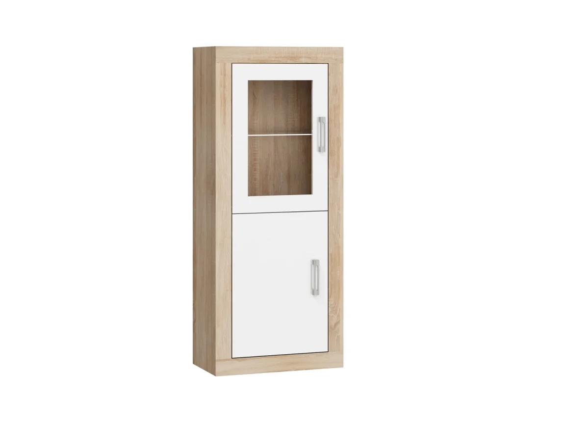 Regál GOUDINI 4 je policový systém s částečně prosklenými dvířky, který nabízí praktické úložné prostory a moderní vzhled. Korpus je proveden v dubu sonoma a dvířka v bílém lesku, čímž vzniká atraktivní kontrast.