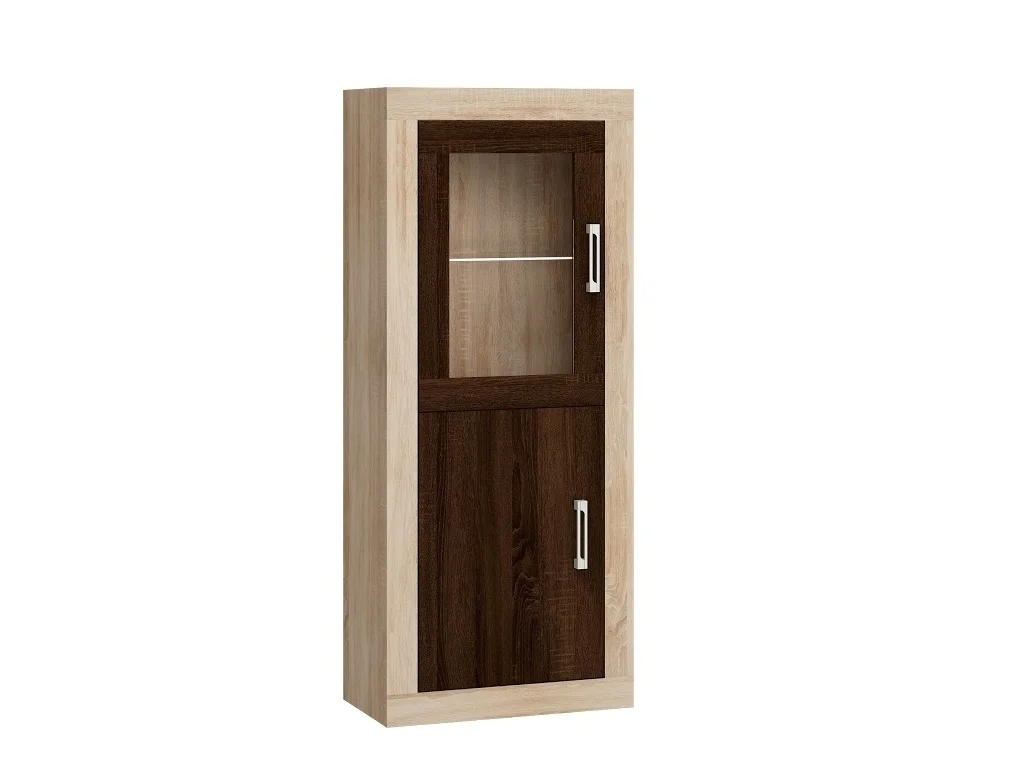 Stylový regál GOUDINI 4 kombinuje uzavřené police s částečně prosklenými dvířky. Korpus je proveden v odstínu dub sonoma a dvířka jsou tmavšího dubu sonoma, což vytváří elegantní a nadčasový vzhled.