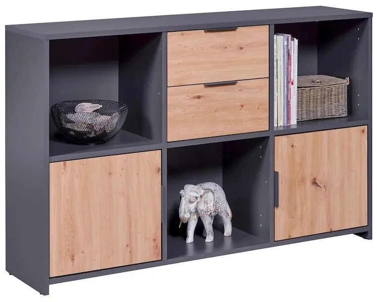 Moderní a odolný regál PEPETO 2T2S je ideální volbou pro vaši domácnost nebo kancelář. Vyrobený z kvalitní laminované dřevotřísky v dekoru dub-antracit, nabízí nejen stylový vzhled, ale i vysokou odolnost proti poškrábání, nárazům či znečištění. Díky své praktické konstrukci s rozměry 120 cm na šířku, 77 cm na výšku a 30 cm do hloubky poskytuje dostatek úložného prostoru. Tento regál je dodáván v demontovaném stavu, což usnadňuje jeho přepravu a instalaci. Jeho robustnost a elegantní design jej činí vhodným doplňkem do různých interiérů, kde oceníte kombinaci funkčnosti a moderního vzhledu.