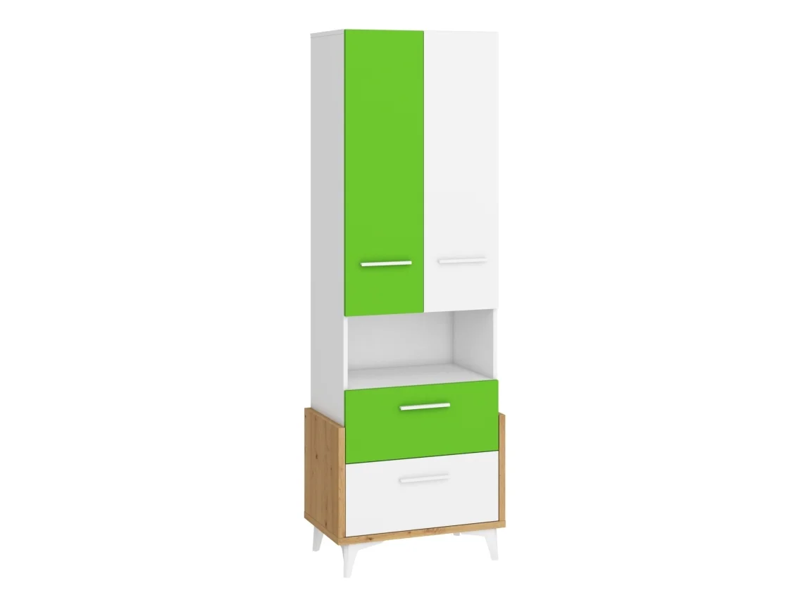 Rozměry: 65 cm šířka, 195 cm výška, 42 cm hloubka; výška nožek 12 cm. Korpusy mají tloušťku 25 mm, dvířka a ostatní díly 16 mm; nožky jsou vyrobeny z tvrzeného plastu. Zásuvky i dvířka disponují systémem tichého dovírání, což zajišťuje plynulé a tiché používání. Dodáváno v demontu. Záruka 5 let. Pro lepší organizaci domova je ideální do obývacího pokoje, pracovny i dětského kouta a díky odolnému laminu i dlouhé životnosti. Stačí ho umístit na stabilní povrch a ihned nabídne spolehlivý úložný prostor i elegantní vzhled.
