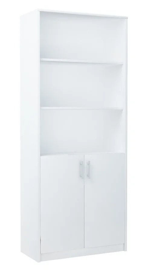 Regál NEFERTUM V s dvířky se hodí do každé domácnosti i kanceláře, poskytuje spolehlivý úložný prostor. Korpus i dvířka jsou vyrobeny z laminátu LTD, který je odolný proti poškrábání, vlhkosti a vysokým teplotám a dlouhodobě si tak zachovává vzhled. Rozměry regálu: výška 180 cm, šířka 74 cm, hloubka 35 cm. Barva: bílá. Materiál: LTD (lamino). Dodáváno v demontu a se zárukou 24 měsíců. Pro pohodlnou montáž doporučujeme postupovat podle přiloženého návodu a využít dostupný úložný prostor pro organizaci dokumentů a dekorací. Díky světlé bílé barvě regál opticky rozjasní interiér a snadno se sladí s různými styly zařízení.