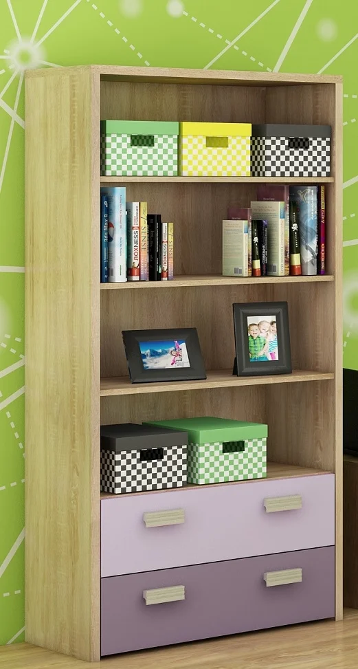 Regál NELLORE dub sonoma/levandulová/fialová Regály