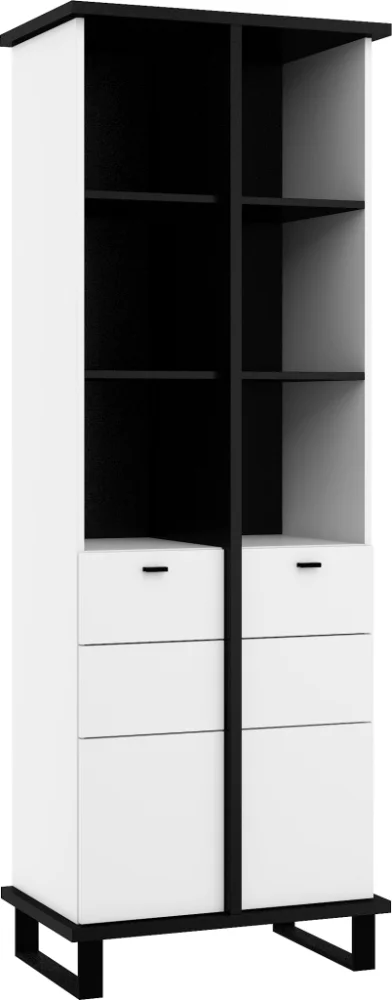 Regál z řady ORSOLA 2D nabízí dvě skříňky s plnými dveřmi a šest otevřených polic, takže jej můžete použít jako knihovnu či praktický úložný systém do obýváku i kanceláře. Uvnitř skříní jsou dvě police, které umožní flexibilní rozvržení prostoru podle vašich potřeb.