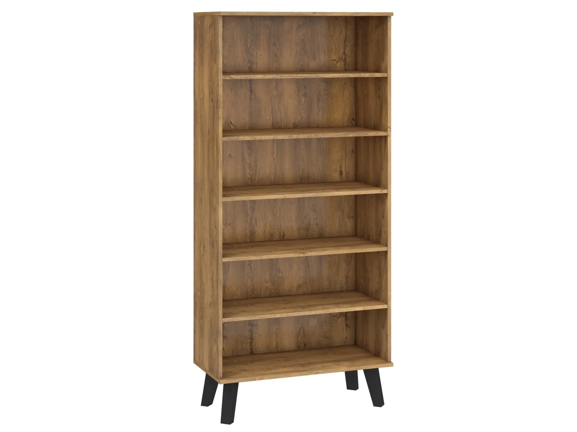 Regál OSMAK v dekoru dub burgundský představuje praktický úložný systém pro knihy a doplňky v čistém a nadčasovém stylu. Rozměry 80 cm na šířku, 174 cm na výšku a 38 cm do hloubky nabízejí dostatek prostoru, zatímco výška nožek 18 cm zajišťuje stabilitu i na nerovném povrchu.
