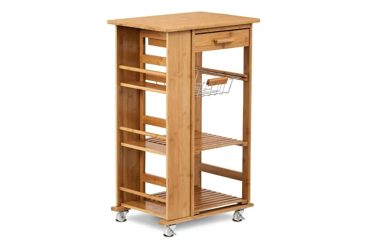 Praktický policový regál na kolečkách usnadní přesun a uskladnění knih, drobností i dekorací v každé místnosti. Je vyroben z masivního bambusu, což zaručuje tvrdost, stabilitu a dlouhou životnost. Povrch v přírodním odstínu s lakem chrání dřevo a dodává jemný lesk, který se hodí do moderní i klasické výzdoby. Dodání probíhá v demontu, montáž je ale rychlá a bez komplikací. Díky kolečkům jej jednoduše posunete tam, kam zrovna potřebujete, aniž byste poškrábali podlahu.