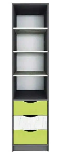 Regál se 3 zásuvkami v moderním barevném provedení doplní každý pokoj. Korpus je z kvalitní LTD desky, v barevném provedení kombinuje dub kraft bílý a šedý grafit, dvířka pak nesou kombinaci dub kraft bílý a limeta. Dodáváme v demontovaném stavu, což usnadňuje přepravu a montáž. Díky praktickému provedení a kontrastům barev získáte stabilní úložný prostor a stylový doplněk do interiéru.