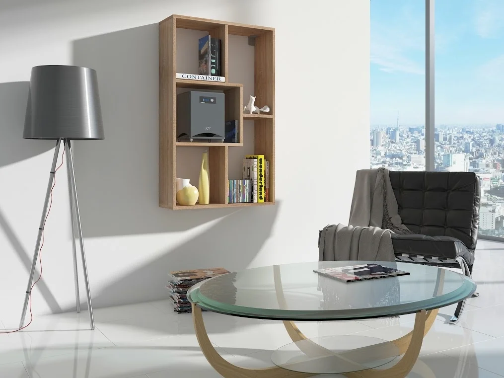 Moderní policový regál USKON I v odstínu dub sonoma představuje stylové a praktické řešení pro úložný prostor. Rozměry (š×v×h): 60/97 × 97/60 × 20 cm umožňují efektivně využít prostor v různých pokojích.