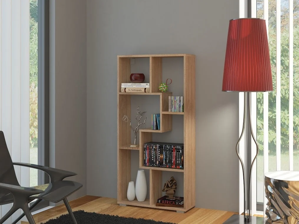 Moderní policový regál v provedení dub sonoma působí čistě a nadčasově. Rozměry 120 × 60 × 20 cm (š x v x h) zajišťují dostatek místa pro knihy, šanony i dekorativní předměty a materiál z desky LTD 16 mm garantuje pevnost.