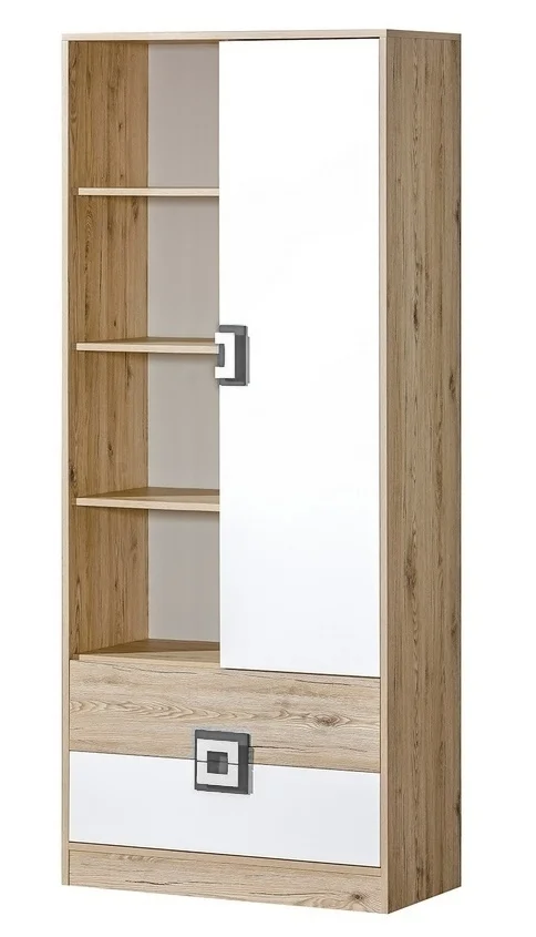 Korpus je v odstínu dub jasný, dveře spojují bíle matnou plochu s dubovým akcentem a úchytky v kombinaci popel / bílá dodávají jemný kontrast. Uzavřená pravá část nabízí tři police a spodní sekce se dvěma zásuvkami, což představuje praktický úložný prostor. Díky své modulární koncepci si snadno navrhnete pokoj podle svých potřeb a lze rozšiřovat o další prvky řady UWARA IV pro ložnici, dětský či studentský pokoj či kancelář. Rozměry: výška 190 cm, šířka 80 cm, hloubka 40 cm. Materiál: LTD (lamino). Dodáváno v demontu. Záruka 24 měsíců.