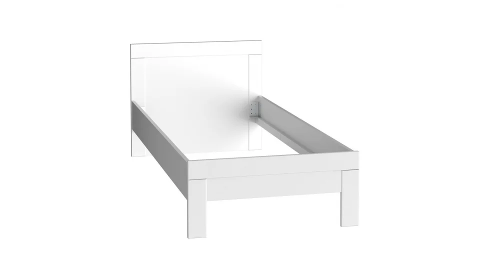 Postel v čistě bílém odstínu je určena pro matrace o rozměru 90×200 cm a je zhotovena z laminované dřevotřísky LTD, která zajišťuje dlouhou životnost a snazší údržbu. Její vnější rozměry jsou 95,6 × 80,8 × 204,8 cm, takže se hodí do běžně prostorných ložnic.