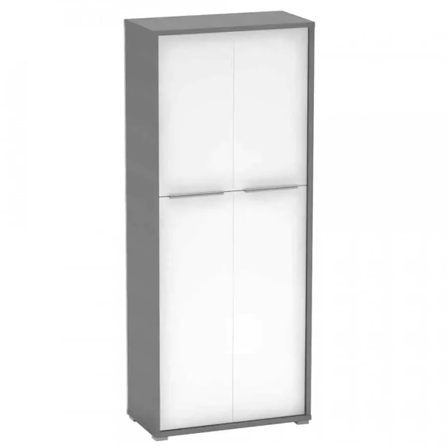 Moderní policová skříň RIOMA NEW TYP 7 vyniká čistým designem s kombinací grafitu a bílé, která se hodí do každé domácnosti či kanceláře. Je vyrobena z DTD laminované desky s tloušťkou 16/22 mm a nabízí prostor rozdělený do dvou samostatných částí a celkem pěti policemi pro systematické uspořádání. Příznivý modulární potenciál umožňuje doplnit skříň o další komponenty ze stejného programu RIOMA, čímž snadno rozšíříte úložný prostor podle potřeby. Dodává se v demontovaném stavu, ale díky pevnému zpracování a jednoduché montáži ji rychle sestavíte. Díky své variabilitě a odolnému materiálu je skříň skvělým řešením pro organizaci věcí a udržení pořádku v interiéru.