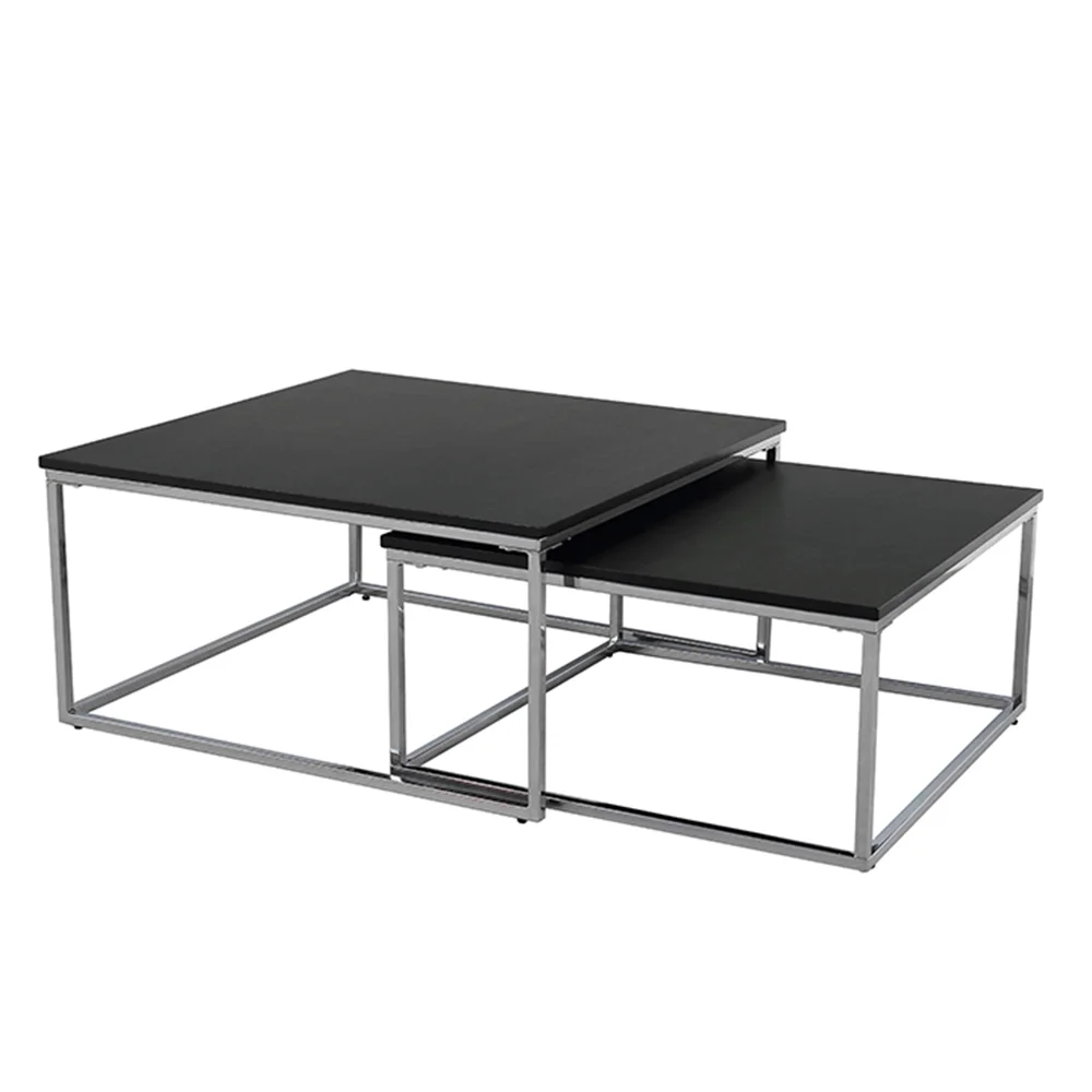 Praktická sada konferenčních stolků RISOP v elegantní kombinaci černé a chromu skvěle doplní váš obývací pokoj. Jde o set dvou stolů s různými rozměry, které lze snadno uspořádat podle prostoru.