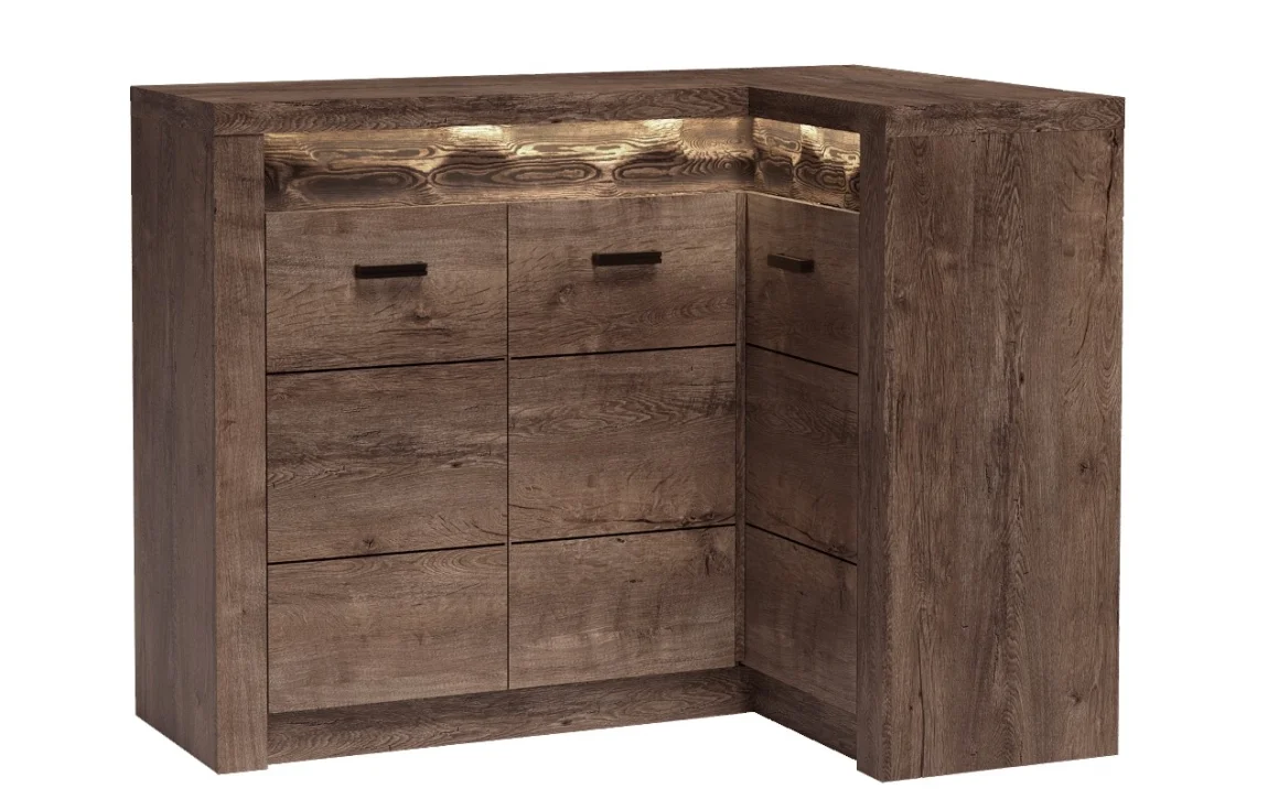 Rohová komoda z řady SWED S15 představuje moderní sektorový systém, který klade důraz na eleganci a praktické využití prostoru. Celá kolekce vyniká čistými liniemi a minimalistickým vzhledem, díky nimž nábytek působí vzdušně a lehce.