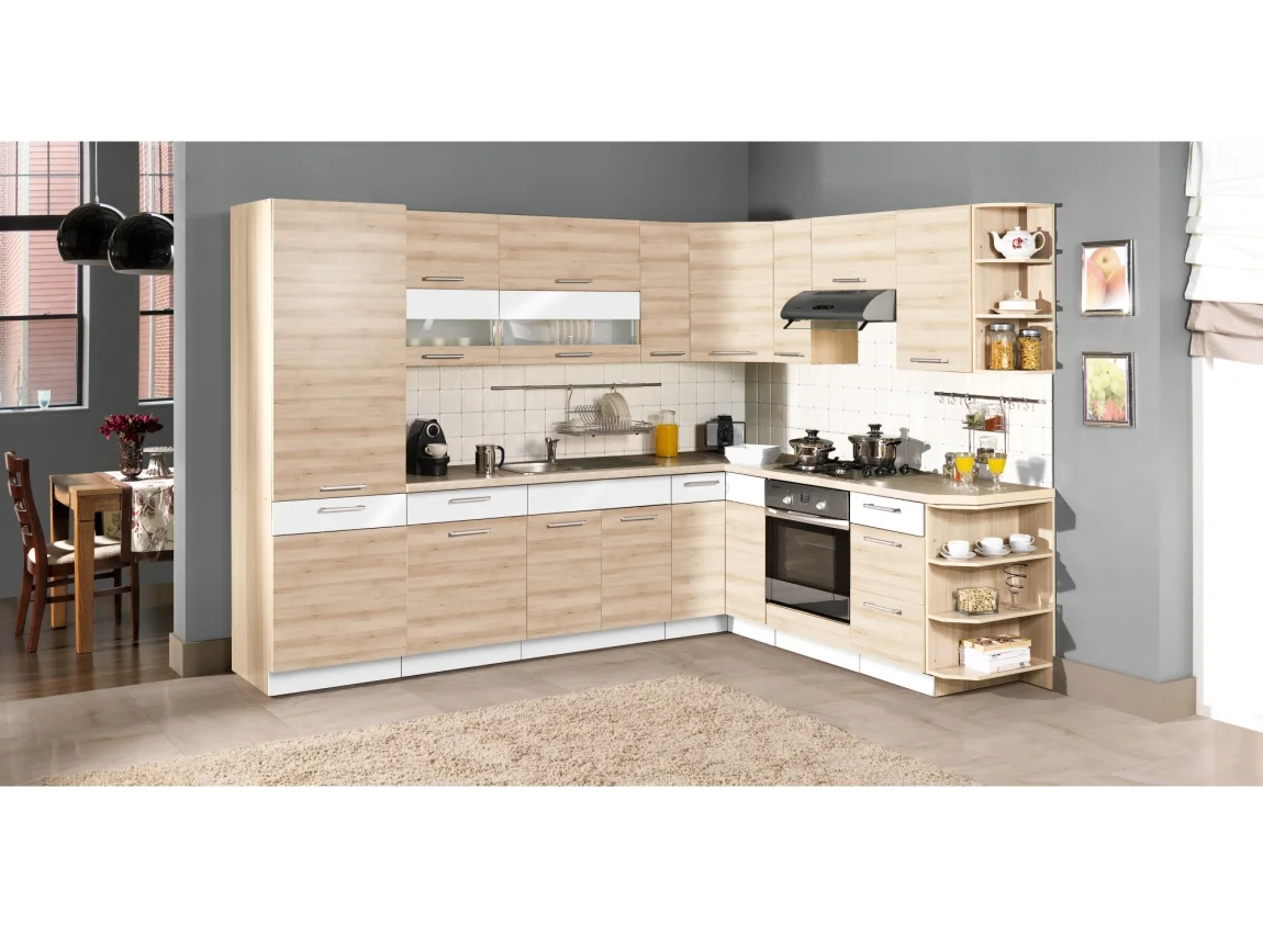 Materiál tvoří LTD s ABS hranou 2 mm. Zásuvky disponují kovovými pojezdy METALBOX a nastavením ve třech úrovních pro hladký chod. Plynové písty ve skříňkách s výklopnými dvířky usnadňují manipulaci. Pracovní deska, dřez, spotřebiče a panel k pracovní desce nejsou součástí ceny; dodání probíhá v demontovaném stavu. Záruka 24 měsíců. Tento komplet je navržen pro pohodlné každodenní používání a snadnou údržbu díky pevným materiálům a praktické konstrukci.