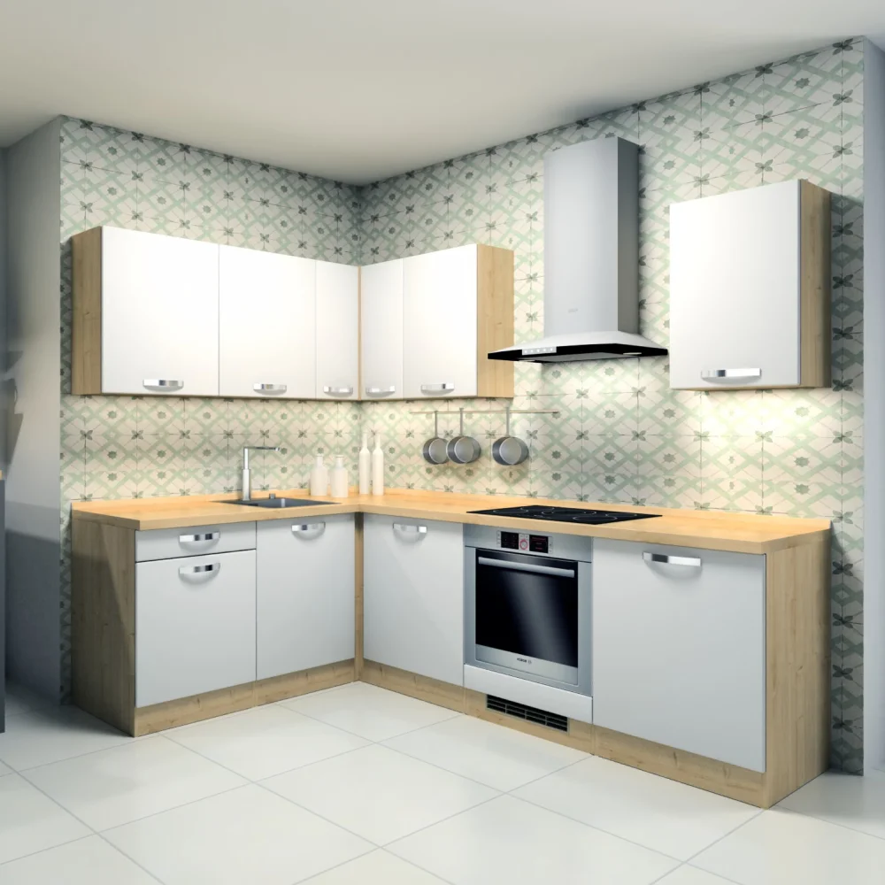 Rohová kuchyňská linka v provedení dub Arlington s matnými bílými dvířky Artic kombinuje styl s praktickým uspořádáním pro každodenní vaření. Korpus tvoří DTD laminovaná deska a dvířka MDF fóliovaná s ABS hranami; tloušťky materiálu jsou 1,6 cm u korpusu a 1,8 cm u dvířek. Rozměry celé sestavy dosahují 240 × 180 × 195 cm a v rohovém uspořádání najdete 2 horní skříňky H60D, 1 H60R a 2 H45D spolu se 3 spodními S60DZ, S120R a S60ER, z nichž H60ER a S120R jsou určeny pro rohové umístění. Pracovní deska má tloušťku 3,8 cm, dodává se v dvou částech a je v barvě dub Arlington; dodána je bez dřezu, který lze zakoupit v naší nabídce. Součástí jsou sokl a kovové úchyty ve šedé barvě s roztečí 12,8 cm, panty na dvířkách s tlumením a šuplík STRONGBOX s plnovýsuvem. Otvor pro dřez a varnou desku je třeba vyvrtat dle konkrétního uspořádání. Linka se dodává v demontu, avšak s kvalitním slovenským původem a připraveným montážním soklem. Dovolte si moderní vzhled a praktickou konfiguraci, která usnadní každodenní práci v kuchyni.