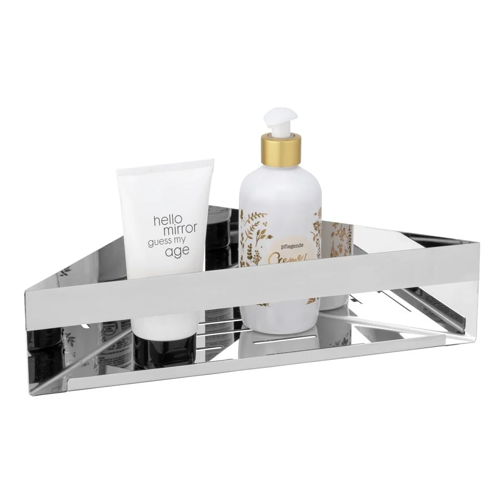 Elegantní rohová koupelnová police vyrobená z kvalitní nerezové oceli v lesklém stříbrném provedení je ideálním řešením pro efektivní využití prostoru ve vaší koupelně. Díky samodržícímu systému snadno připevníte polici bez nutnosti vrtání, což oceníte při modernizaci nebo rekonstrukci.