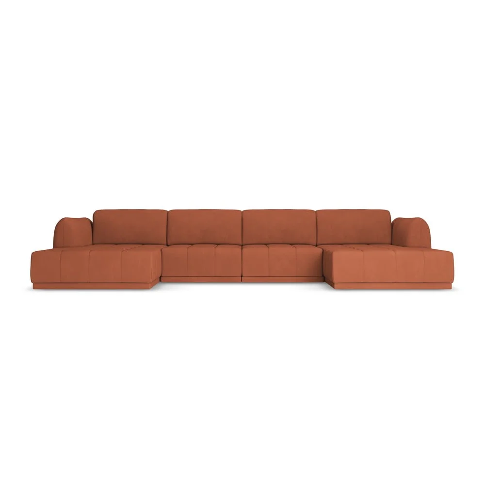 Tato moderní oranžová rohová pohovka Hoku od značky Makamii je ideální volbou pro útulné a stylové obývací pokoje. Nabízí komfortní sezení s prostorným uspořádáním, které dokonale zapadne do různých interiérů.