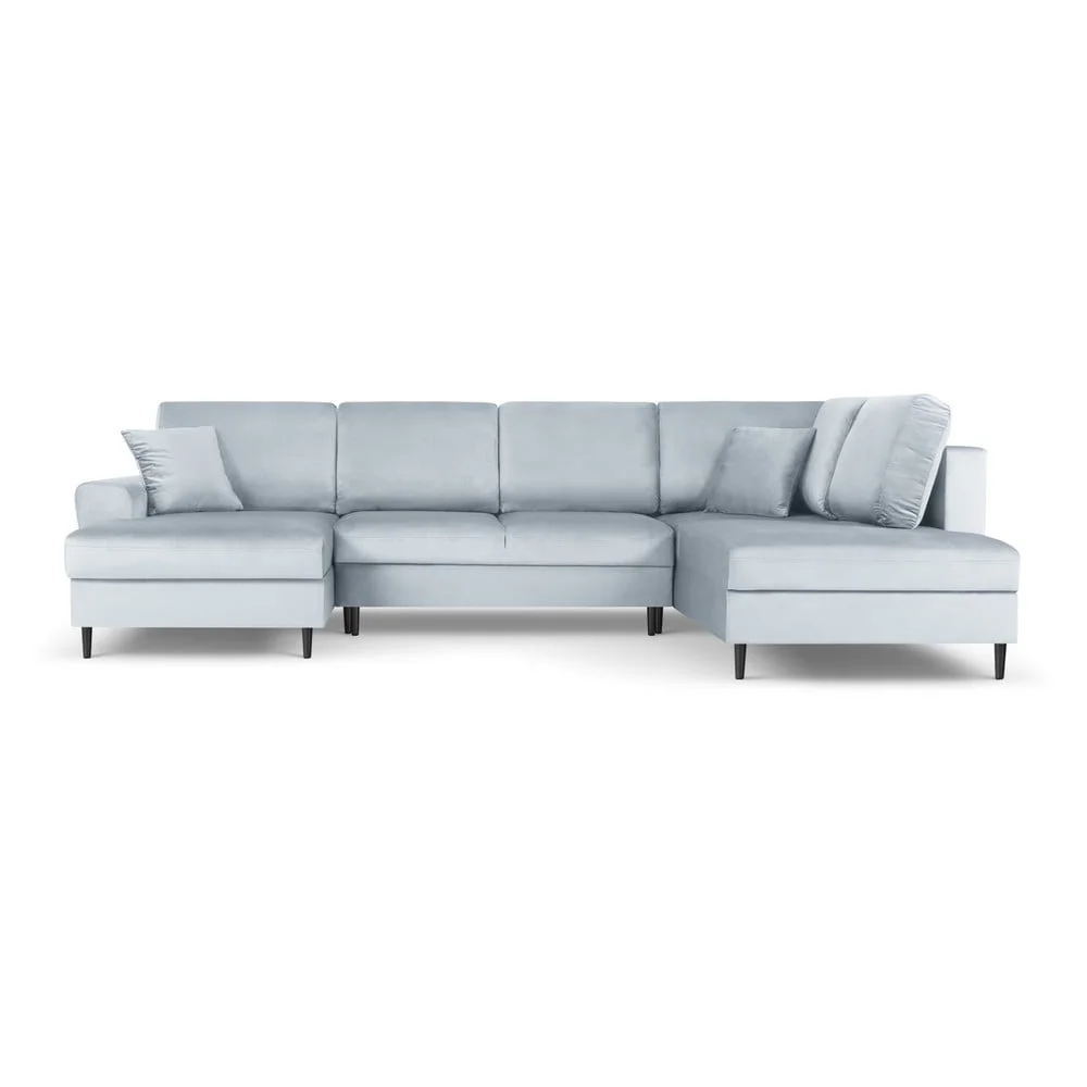 Tato světle modrá sametová rohová pohovka je ideálním řešením pro moderní obývací pokoj, který kombinuje styl a praktickost. Díky své rozkládací funkci poskytuje pohodlné posezení i přespání pro hosty, zatímco vestavěný úložný prostor nabízí místo pro deky, polštáře nebo jiné drobnosti. Pohovka je navržena v elegantním designu s pravým rohem ve tvaru "U", který dokonale využije prostor a dodá místnosti svěží vzhled. Tento kus nábytku je nejen funkční, ale i vizuálně atraktivní, a proto je skvělou volbou pro každou moderní domácnost.