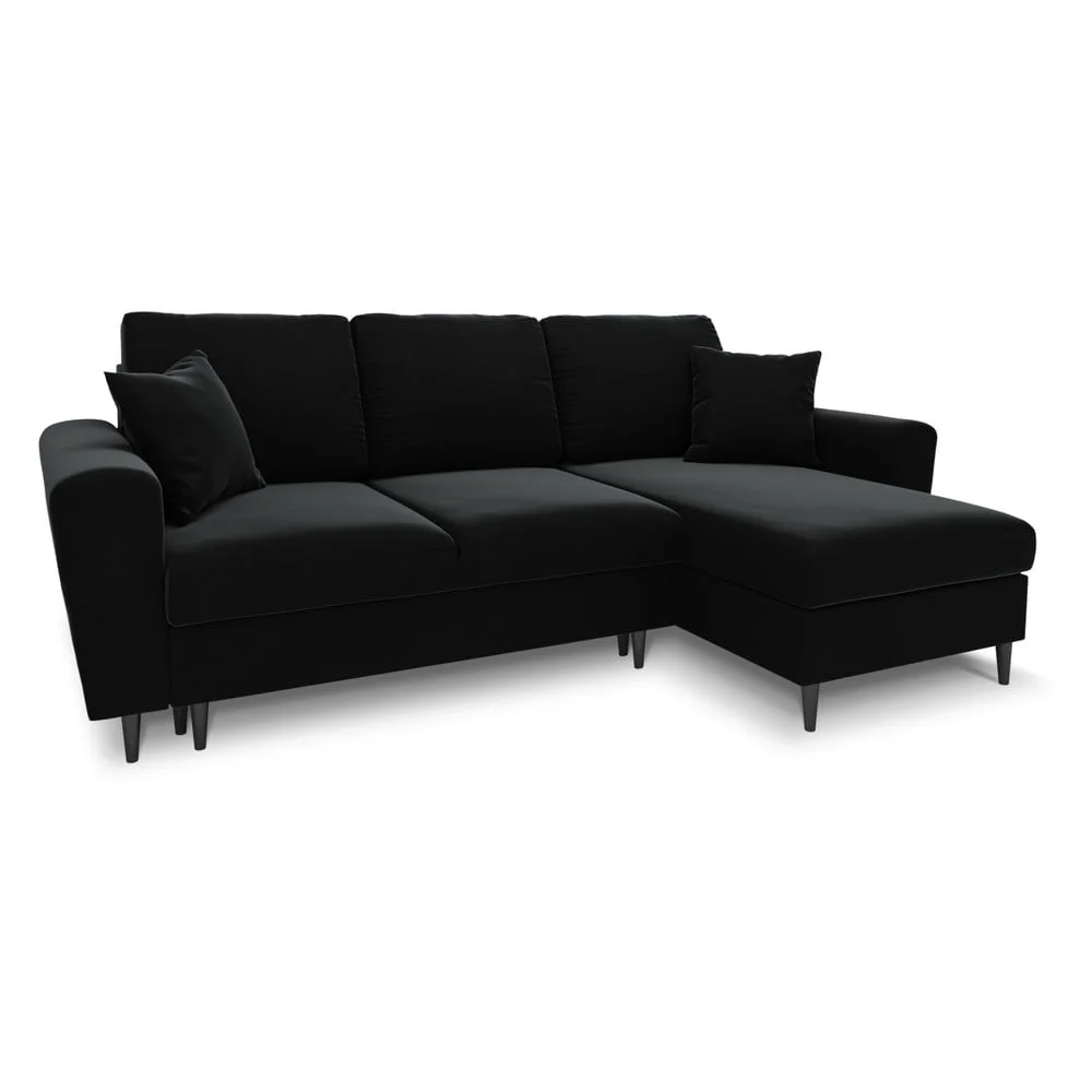 Moderní rohová pohovka Kyoto v elegantní černé sametové látce je ideální volbou pro pohodlné a stylové bydlení. Díky možnosti rozložení poskytuje praktické lůžko pro hosty, zatímco vestavěný úložný prostor umožňuje efektivní skladování polštářů nebo lůžkovin.