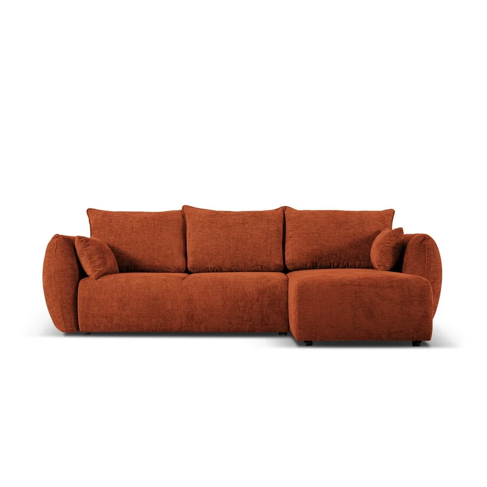 Rohová pohovka Matera ve výrazné oranžové barvě je ideálním doplňkem moderního obývacího pokoje. Díky svému pravému rohu nabízí pohodlí a dostatek místa pro celou rodinu či návštěvu.