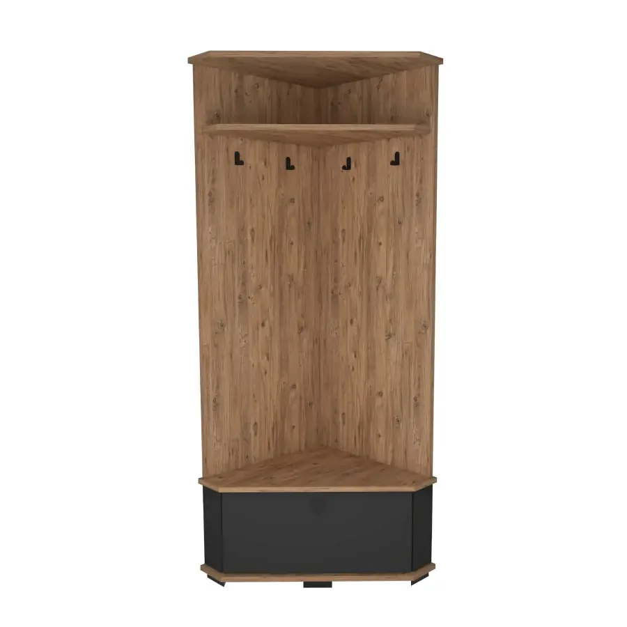 Předsíňová sestava VITINA využívá efektivní rohové řešení, které šetří prostor a zároveň působí elegantně. Sestava obsahuje věšákovou stěnu, skříňku na boty a police, takže si rychle udržíte pořádek. Materiál z melaminu a VT laminátu o tloušťce 18 mm zajišťuje dlouhou životnost a snadnou údržbu. Rozměry 176,6 x 83,4 x 59 cm umožňují pohodlné uspořádání bot, kabátů a doplňků a barva borovice Atlantic s antracitovým prvkem dodává moderní vzhled. Dodáváme v demontu pro pohodlnou přepravu a montáž. Díky neutrálnímu designu se hodí do různých interiérů a snadno ho doplníte o další organizérské prvky, čímž získáte stylový a praktický vstupní prostor.