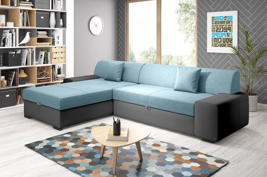 Rohová rozkládací sedačka Antiochie s levou orientací kombinuje stylové barevné provedení a praktické řešení do obýváku. Proč ji zvolit? Luxusní kontrast světlé látky Primo 73 a černé ekokůže Madryt 1100 dodává sedačce moderní vzhled a snazší údržbu.