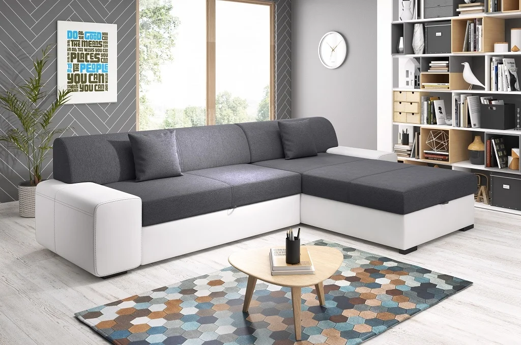 Sedačka ANTIOCHIE je rohová varianta s pravým rohem, která poskytne dostatek místa pro každodenní relaxaci i pro hosty. K dispozici jsou dvě varianty potahu: Primo 96 tmavě šedá látka a Madryt 120 bílá ekokůže; vyberte si dle stylu a nároků na údržbu.