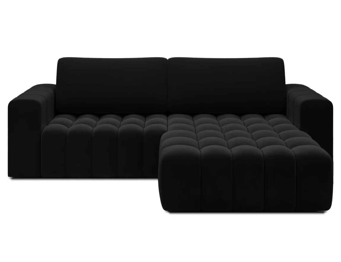 Rohová rozkládací sedačka BIFIDA 10 se dodává v pravém provedení a zajišťuje elegantní vzhled obývacího prostoru. Potahová látka Mat Velvet černé barvy dodává sedačce jemný nádech luxusu a zajišťuje komfort při sezení.