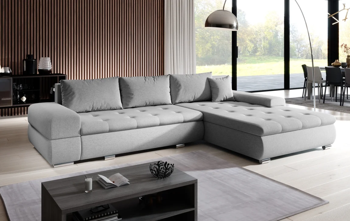 Rohová rozkládací sedačka COLORITO 28 v šedé barvě je univerzální a roh lze snadno postavit na pravý i levý směr, čímž se výborně přizpůsobí vašemu interiéru. Potahová látka Primo 92 v šedé barvě je odolná a snadno se čistí.