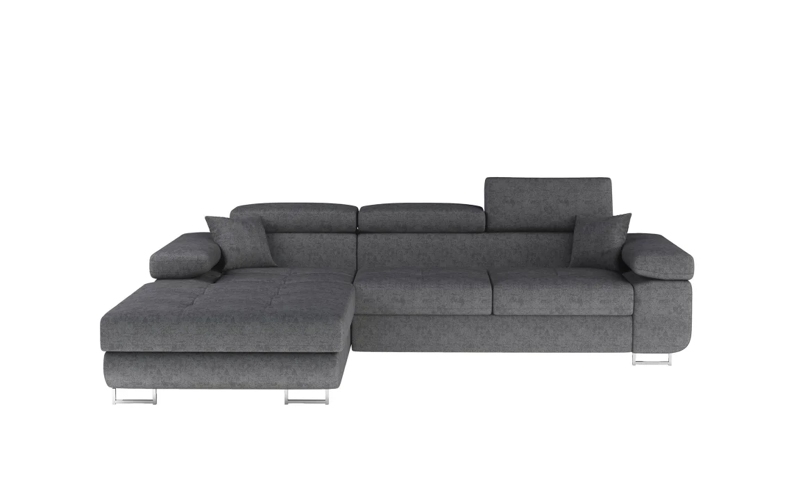 Moderní rohová sedačka s rozkladem v levé konfiguraci skvěle doplní každý obývací prostor. Zadní část je potažena látkou, takže ji lze postavit i volně v místnosti bez nutnosti opření o stěnu.